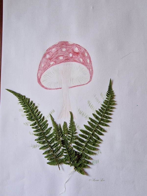 The drawing looks good already.  :)  For the fern, you can fill the inner part of the leaves a bit.